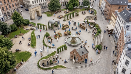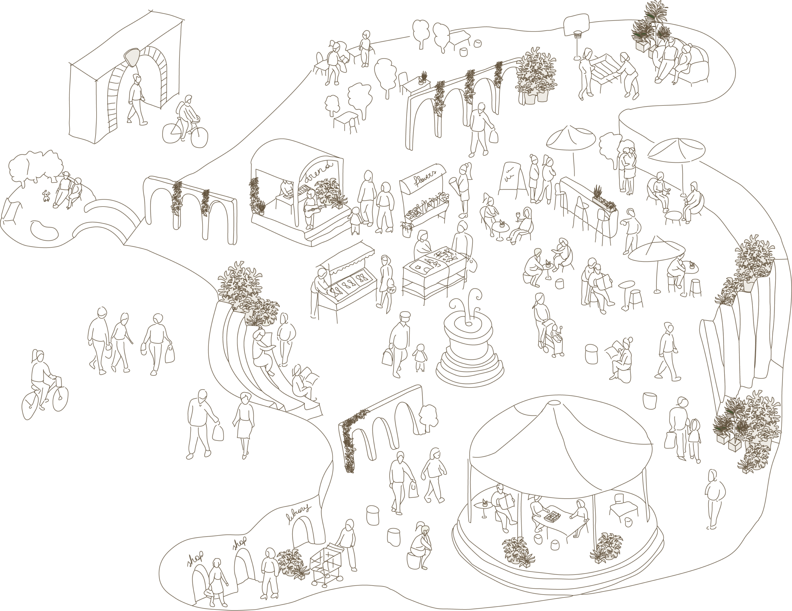 a vision inspired by the Italian town square as a place of sensory well-being, relationships, and shared life.