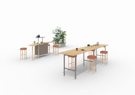 Cafés and Bars are those unique places within a city where people choose to be. Likewise, the Cafeteria in the office space encourages people to socialize, meet, be informed and create lasting bonds. It is a cosy and comfortable space where people can feel at ease, relax, communicate and build relationships between colleagues, during a coffee break.