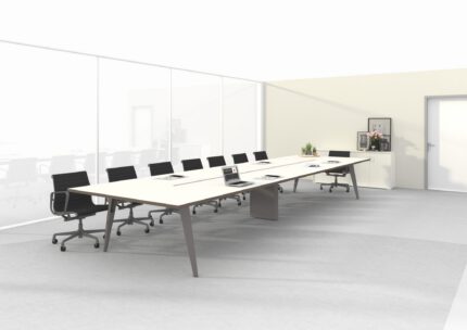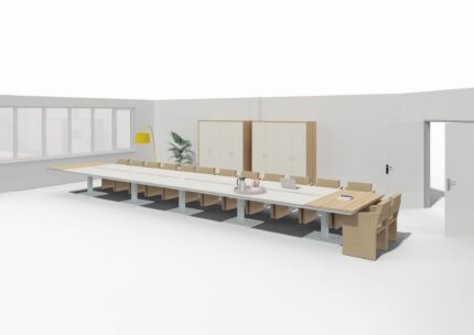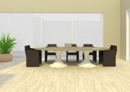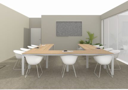 Meeting rooms can be sorted into small or large rooms, the first ones allow to organize in private and informal meetings between few people and require compact tables with simple electrification; the large one are wider spaces and make the conversations more formal and important, the furniture is more elegant and the tables may require integrated audio video arrangements.