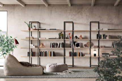 They can contain books, docs, document folders but also display decorative objects, vases or travel souvenirs, becoming a real furnishing element able to determine the style of the environment in which it is located. Biblos Martex Bookcase is a system that is expressed in: Biblos_tower with shelves, floor standing or wall-hung and Biblos_grid with modular bookcase.