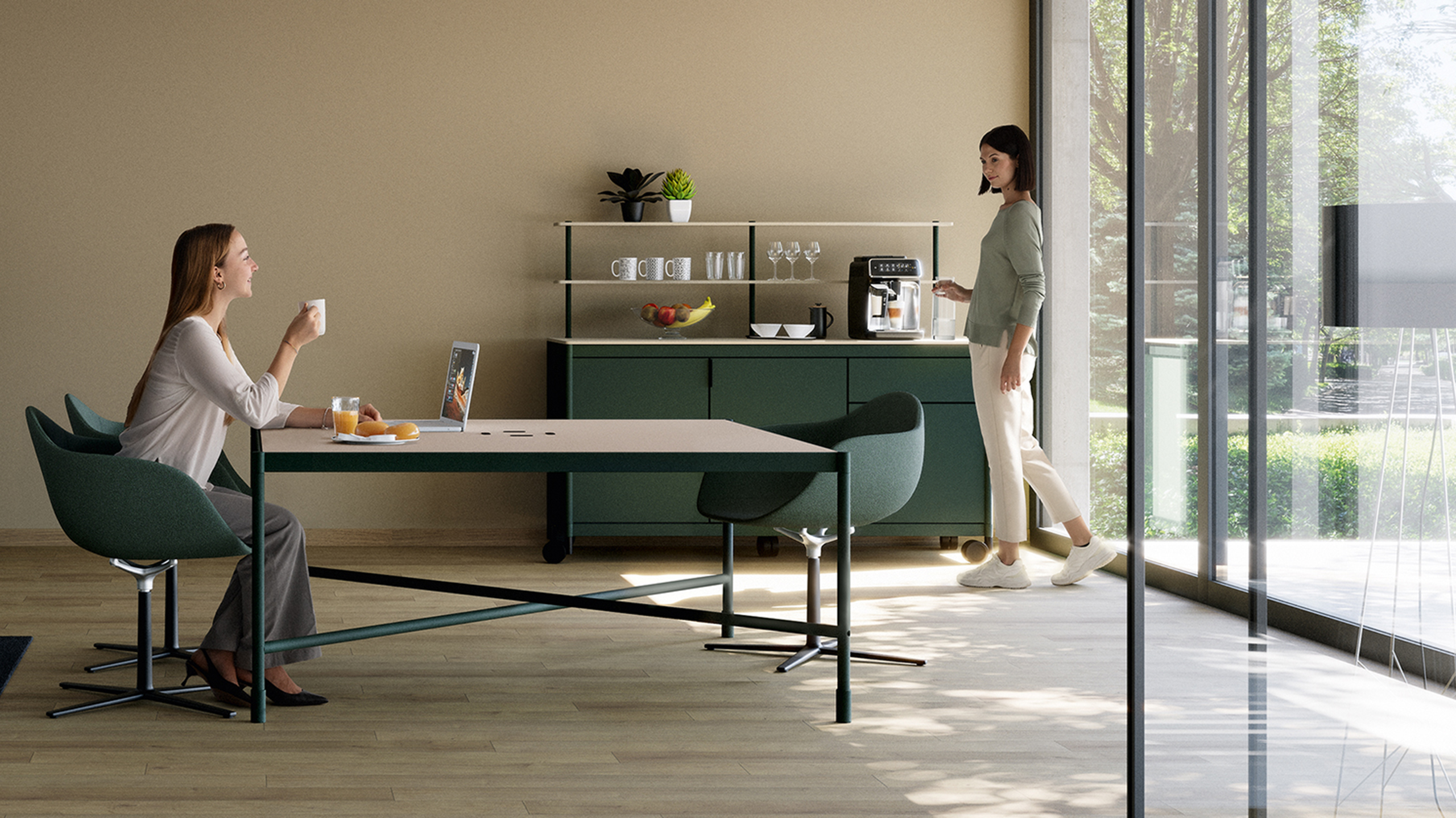 In contemporary workplaces, connecting and socialising with each other has become essential to foster a collaborative climate that nurtures creativity. An essential element in this context is the break area with kitchen, a place for meeting and sharing. To respond to the needs of multifunctional and modern spaces, Martex has developed the Fluido® Kitchenette. The result of a combination of refined design and practical functionality, the Fluido® Kitchenette is the ideal solution for office-break areas furnished with tables in a coordinated style.