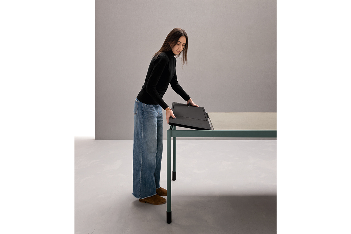 Cela signifie non seulement un gain de temps, mais aussi un impact environnemental réduit car aucune visserie ne figure dans l’emballage. La table peut être personnalisée en choisissant la configuration qui convient le mieux à la fonction du moment. Le montage se fait en peu de gestes par tous les utilisateurs, car les éléments qui composent Fluido® sont légers et faciles à manipuler.