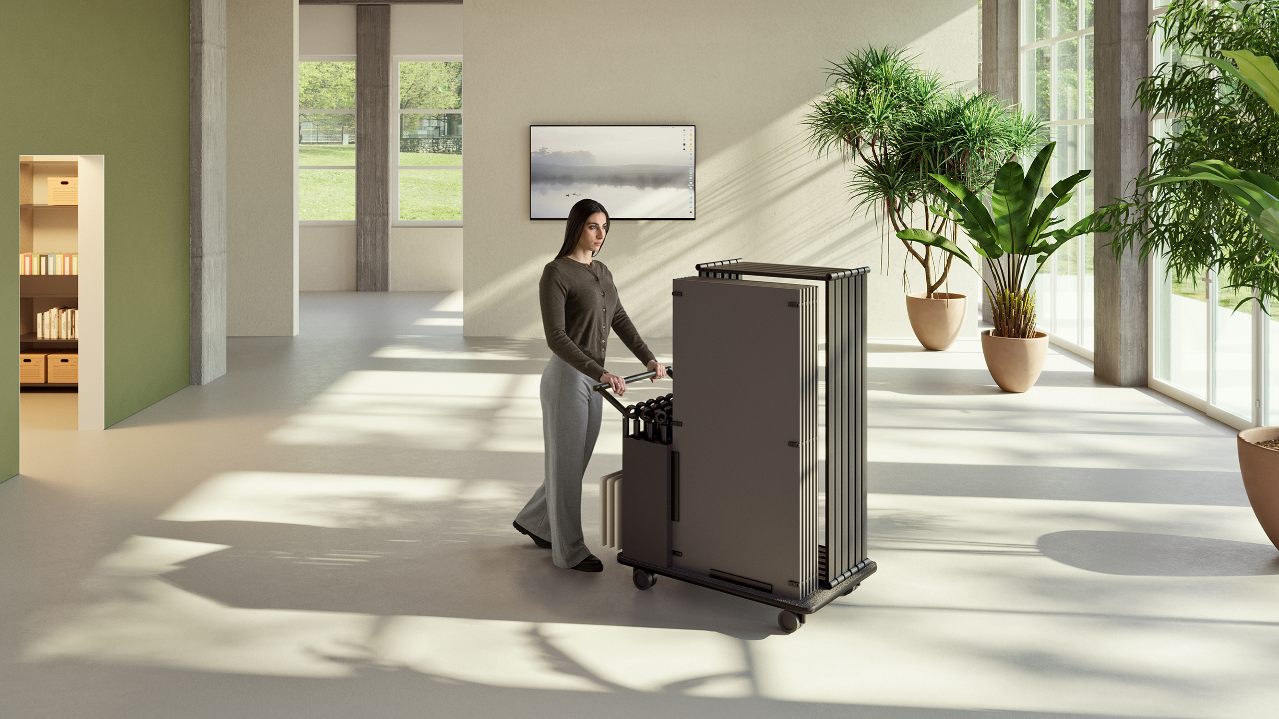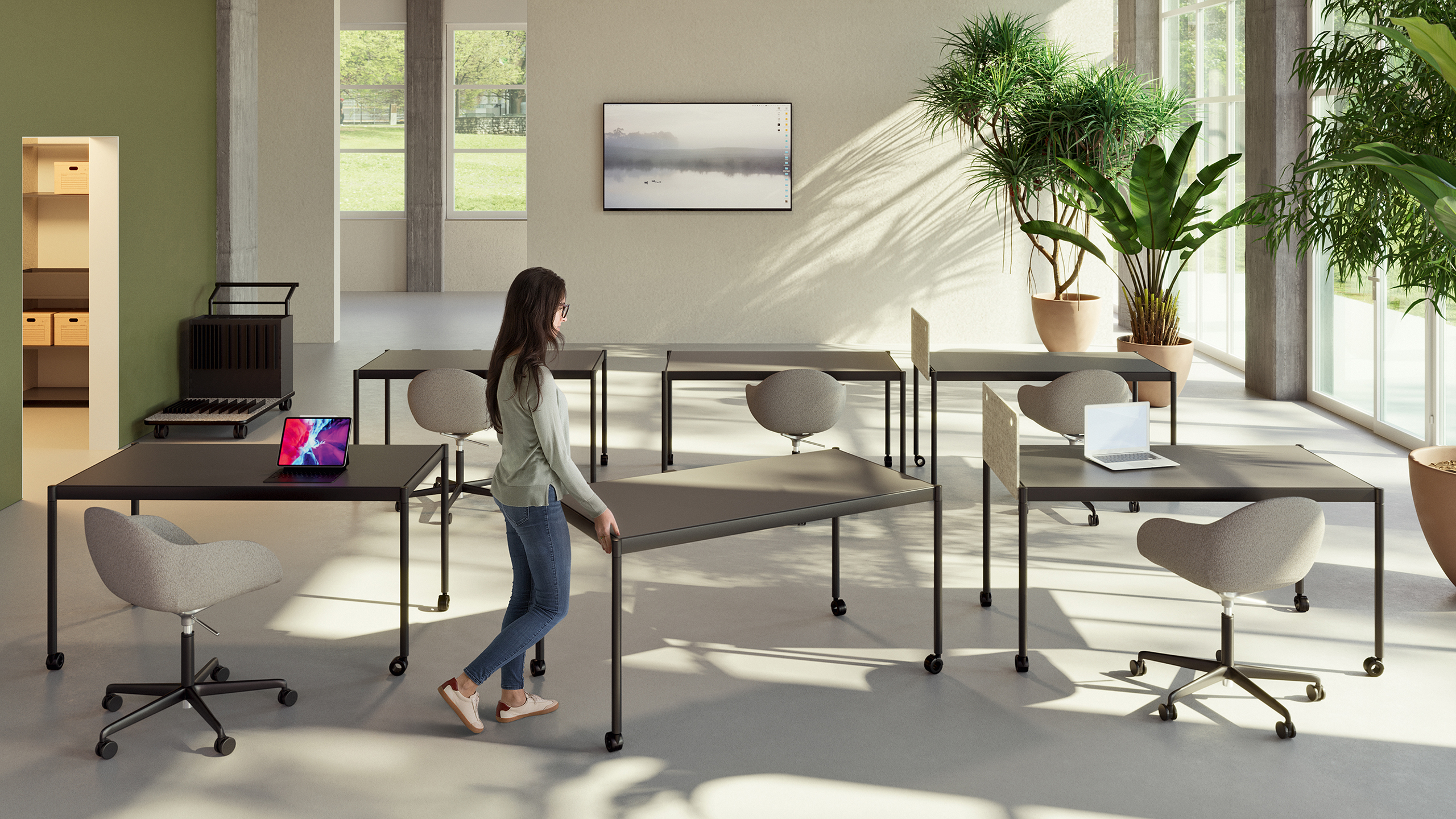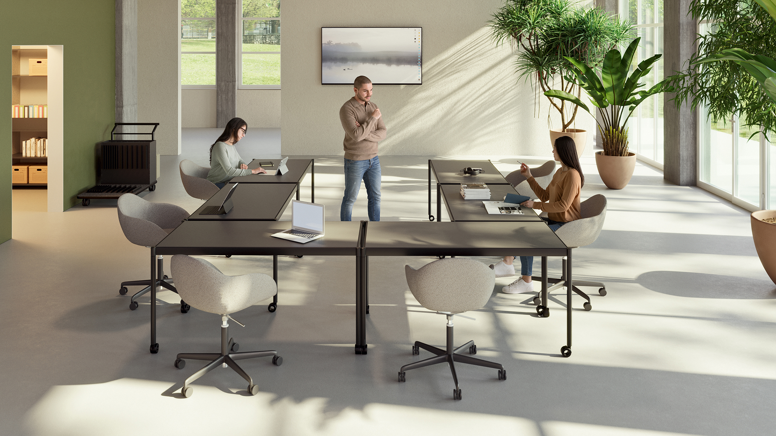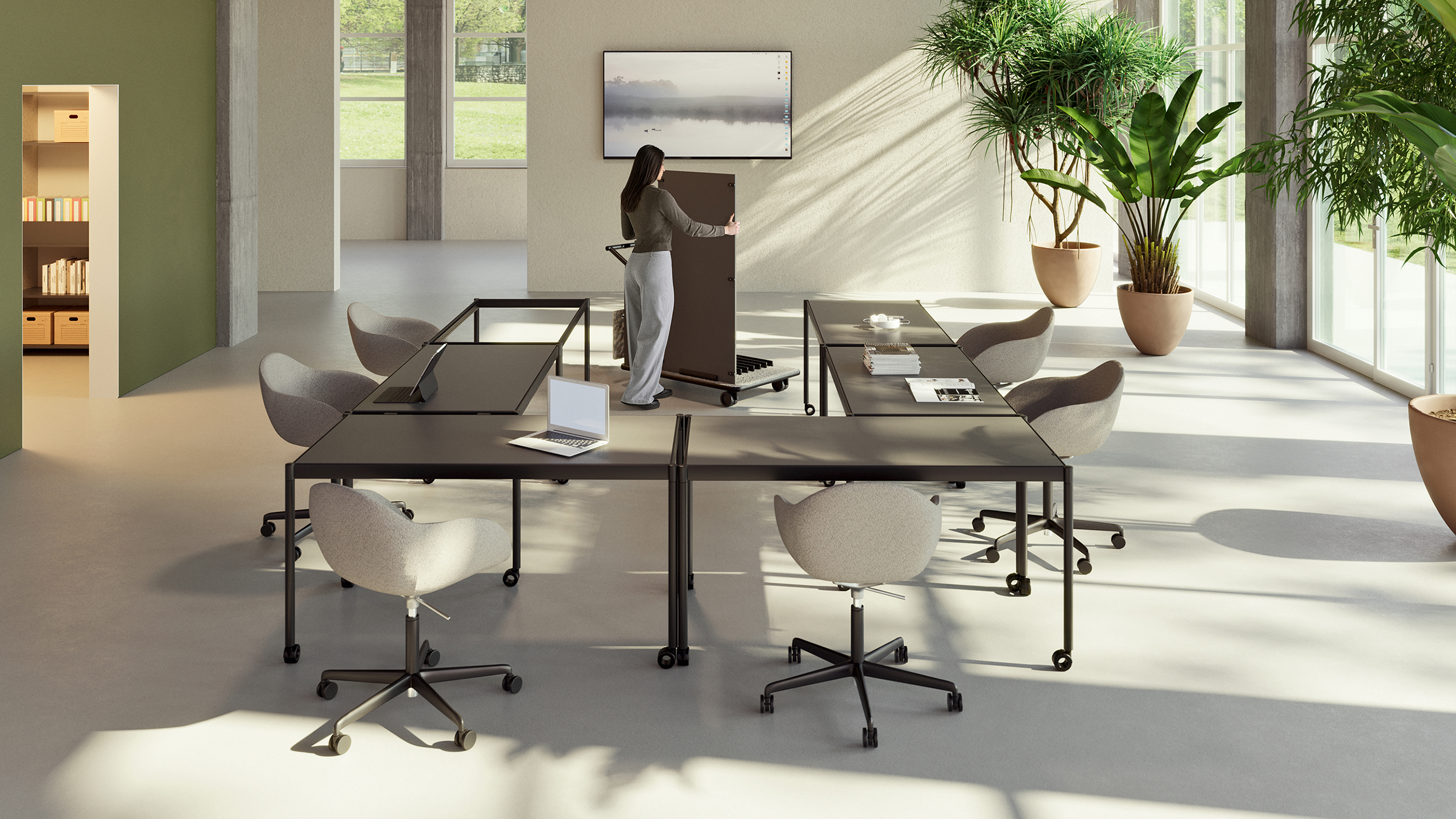 Aujourd’hui, une pièce peut se transformer au cours d’une même journée en milieux différents: de salle de réunion, à salle de formation, à poste de travail individuel. C’est pourquoi l’espace doit pouvoir se transformer de manière flexible et dynamique. Dans cette perspective d’efficacité et de versatilité, les protagonistes incontestés sont les mobiliers. Mobiliers flexibles, qui permettent de passer d’une configuration à une autre selon la destination, s’adaptant à toutes les exigences de manière simple et rapide. Mobiliers qui doivent être réaménagés par l’utilisateur de façon simple et intuitive, sans nécessiter d’intervention de personnel spécialisé.
