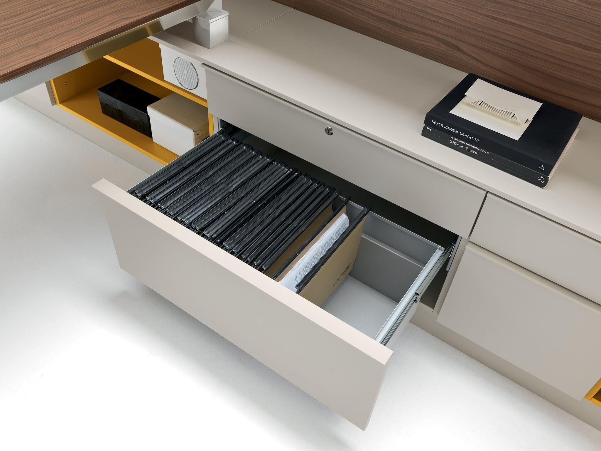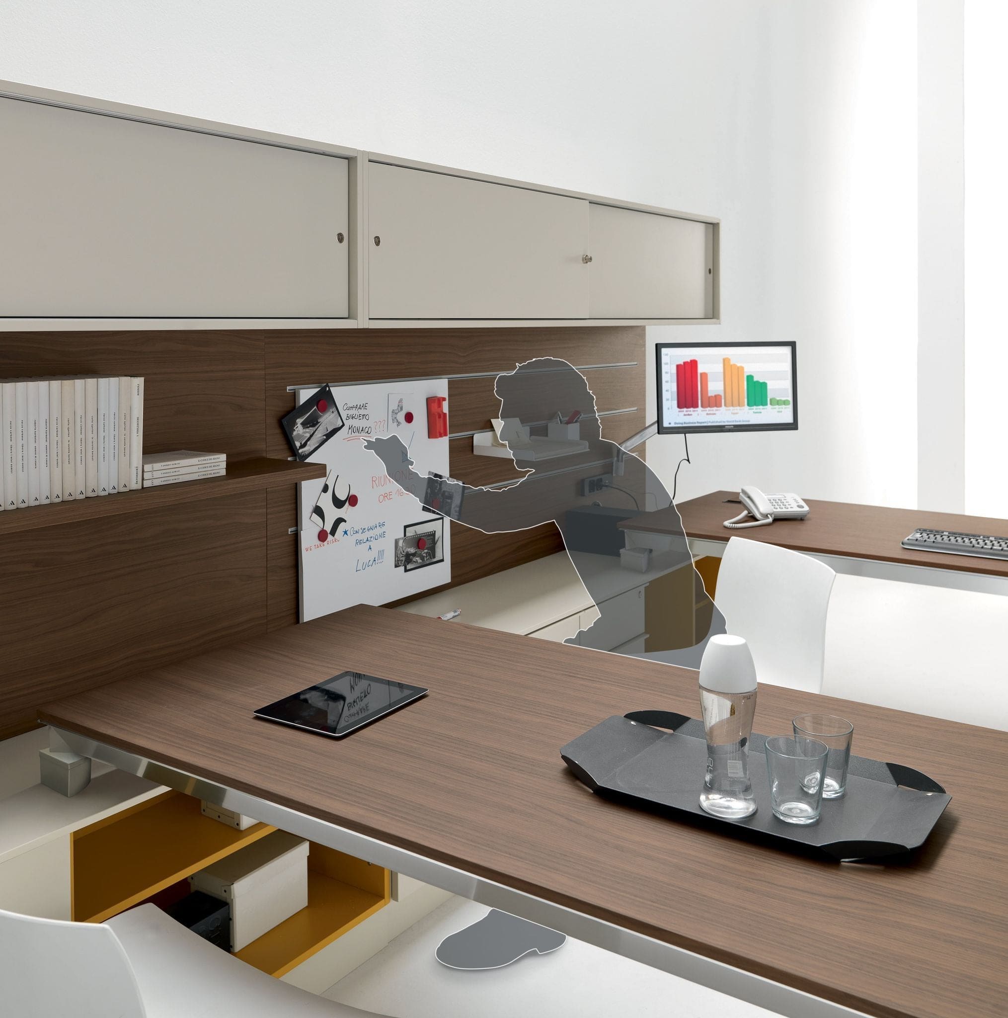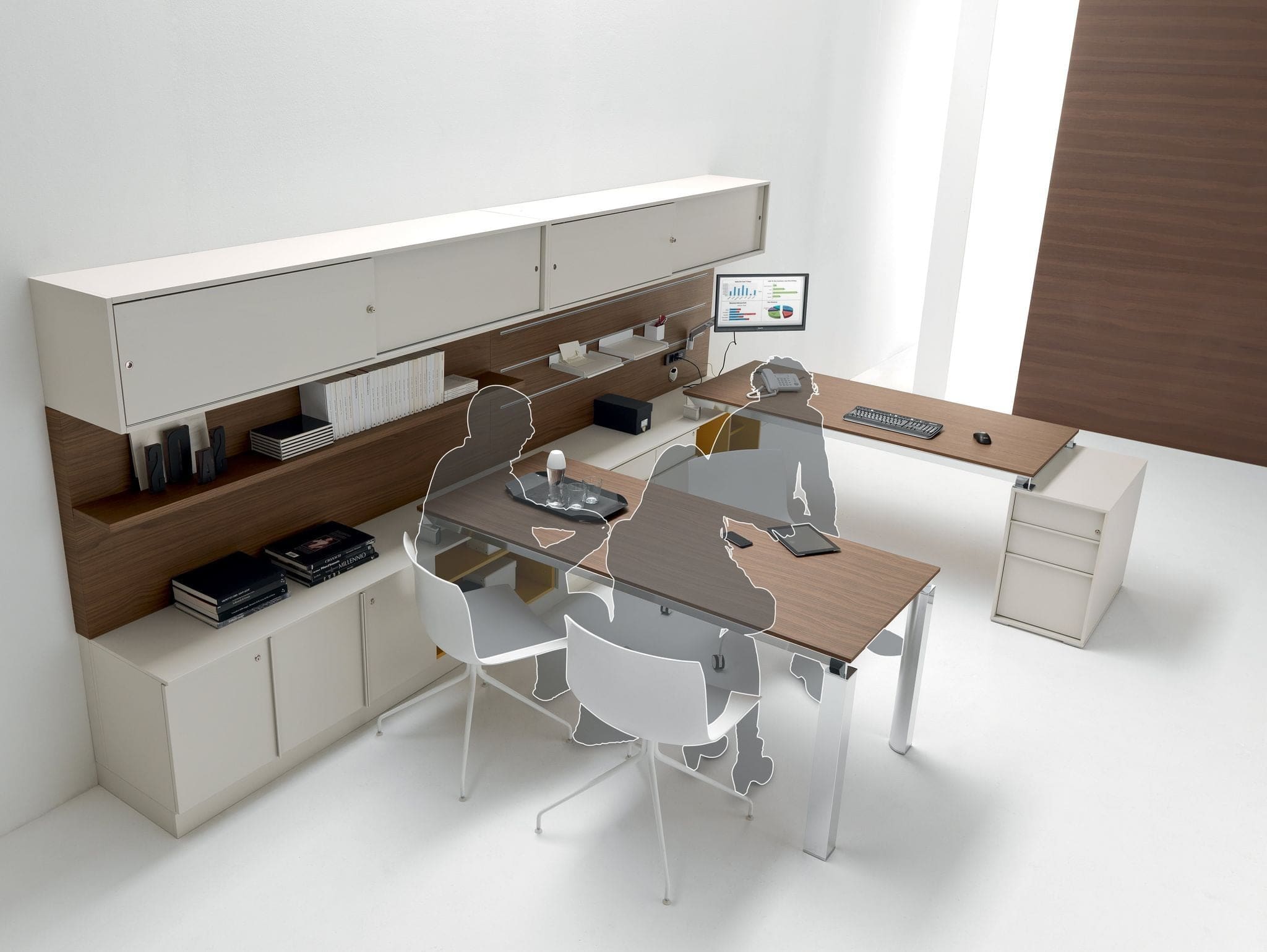 Le système Han est caractérisé par la qualité des matériaux employés, par l’attention aux détails et par le soin des façonnages; toutes ces particularités placent Han dans l’imaginaire des managers qui souhaitent habiter un lieu de travail en mesure d’exprimer confort, style et autorité.