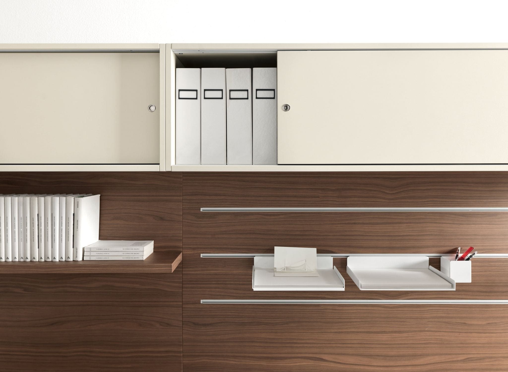 | Finition plateaux | Placage bois noyer, rovere classico, rovere tabacco, mélamine, laqué mat, verre laqué ou anti salissure, gres, Fenix®, marbre, similcuir ou cuir |