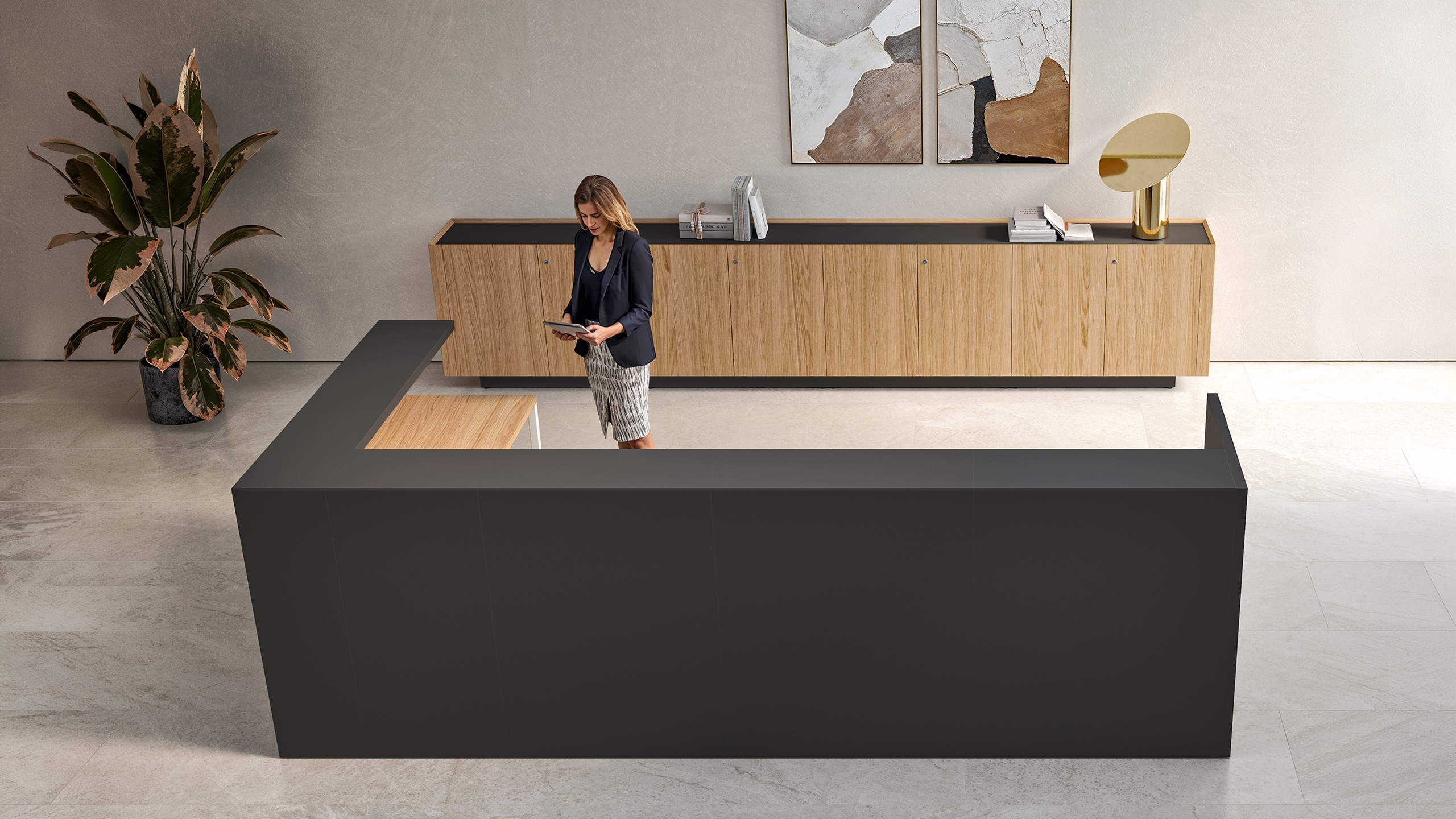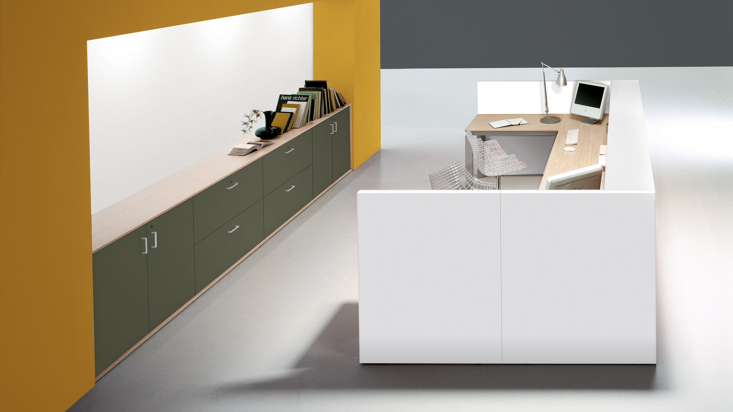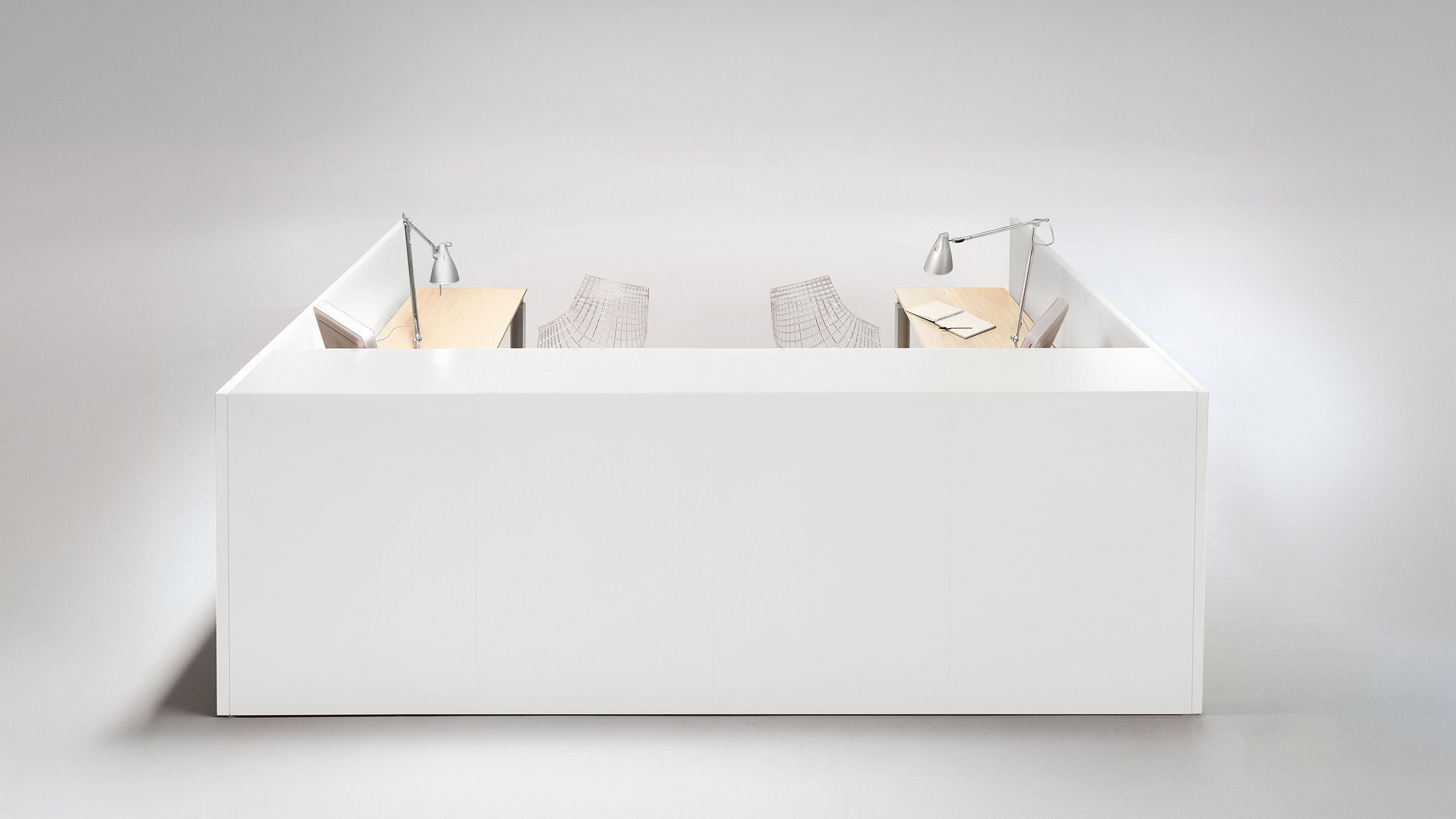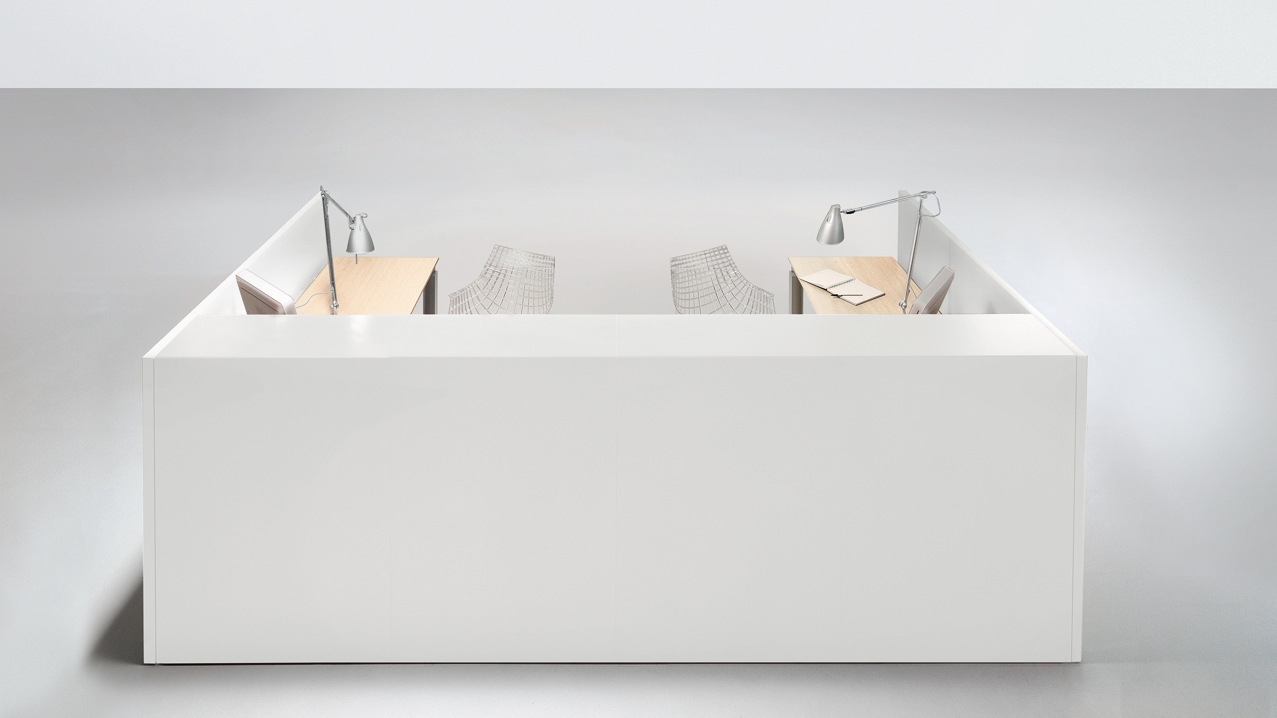 Le banque d’accueil est le cadre qui exprime pour la première fois la personnalité et l’image d’une entreprise: avec son minimalisme rigoureux, le banque d’accueil Shelter communique une atmosphère de fonctionnalité raffinée.