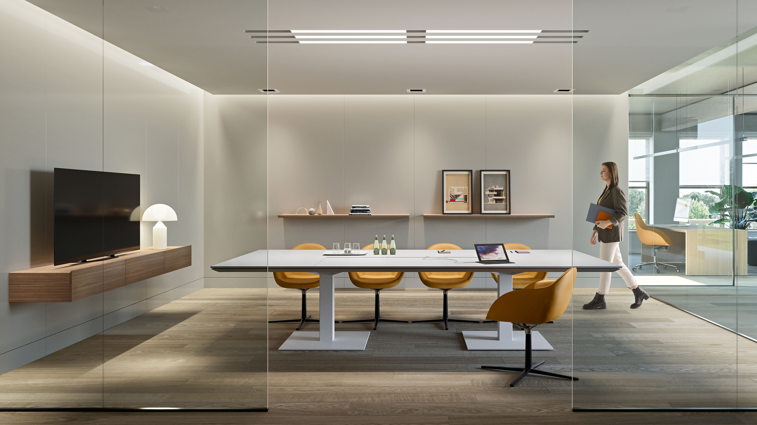 Anche nelle sale riunioni Anyware soddisfa requisiti di funzionalità, comfort ed estetica.