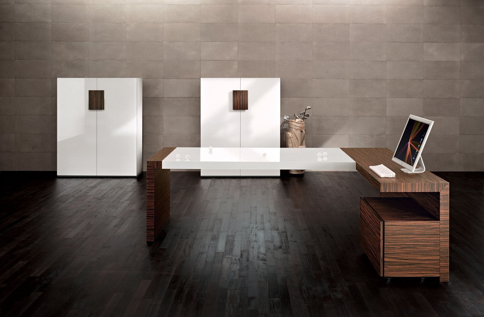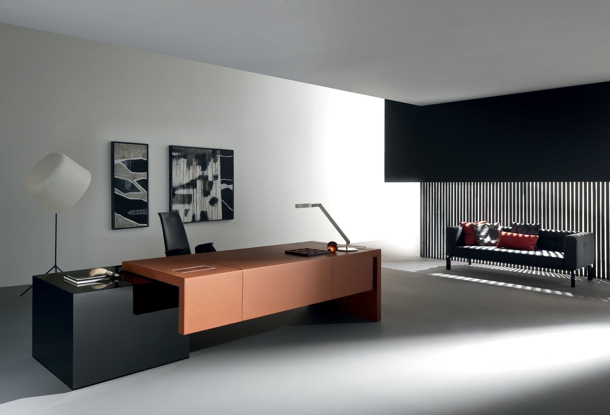 Scrivanie e tavoli riunioni prevedono infatti un’ampia varietà di materiali: dai legni ai laccati, dai vetri alle pelli, dal cemento al solid surface, fino a materiali più particolari quali, su richiesta, gres o marmi.