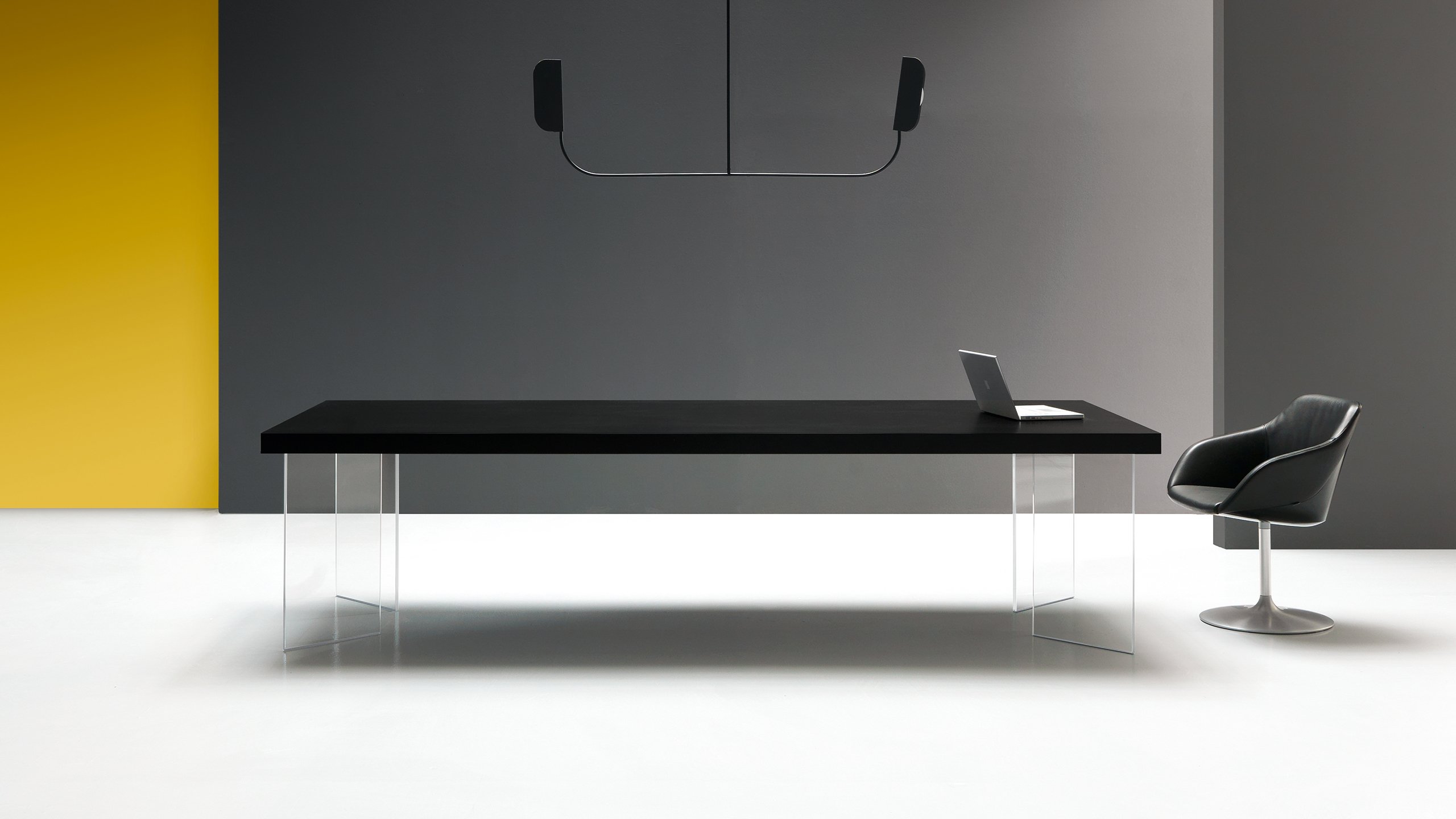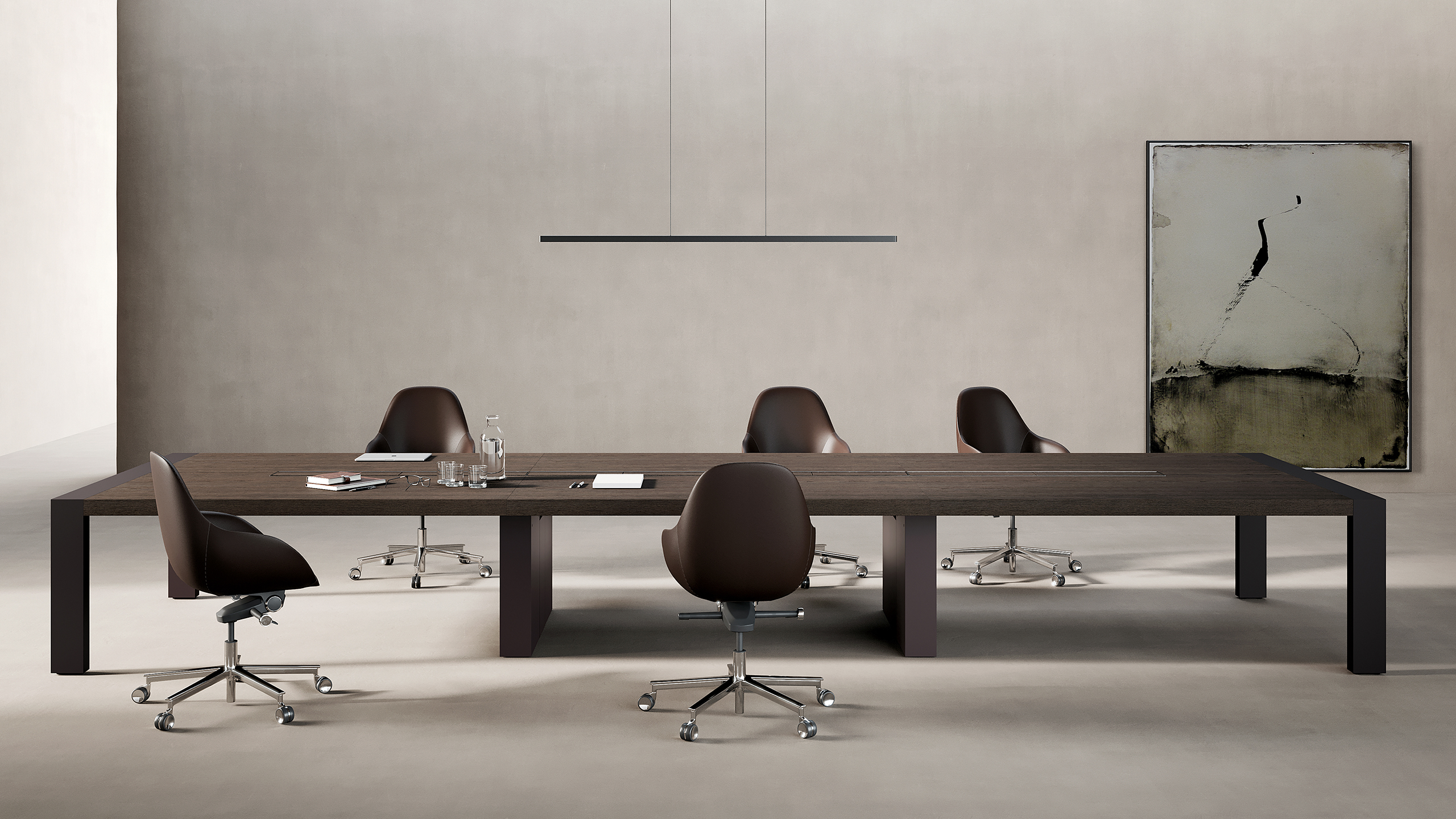 La linea Kyo permette di realizzare tavoli riunioni di grandi dimensioni, assolutamente ergonomici.