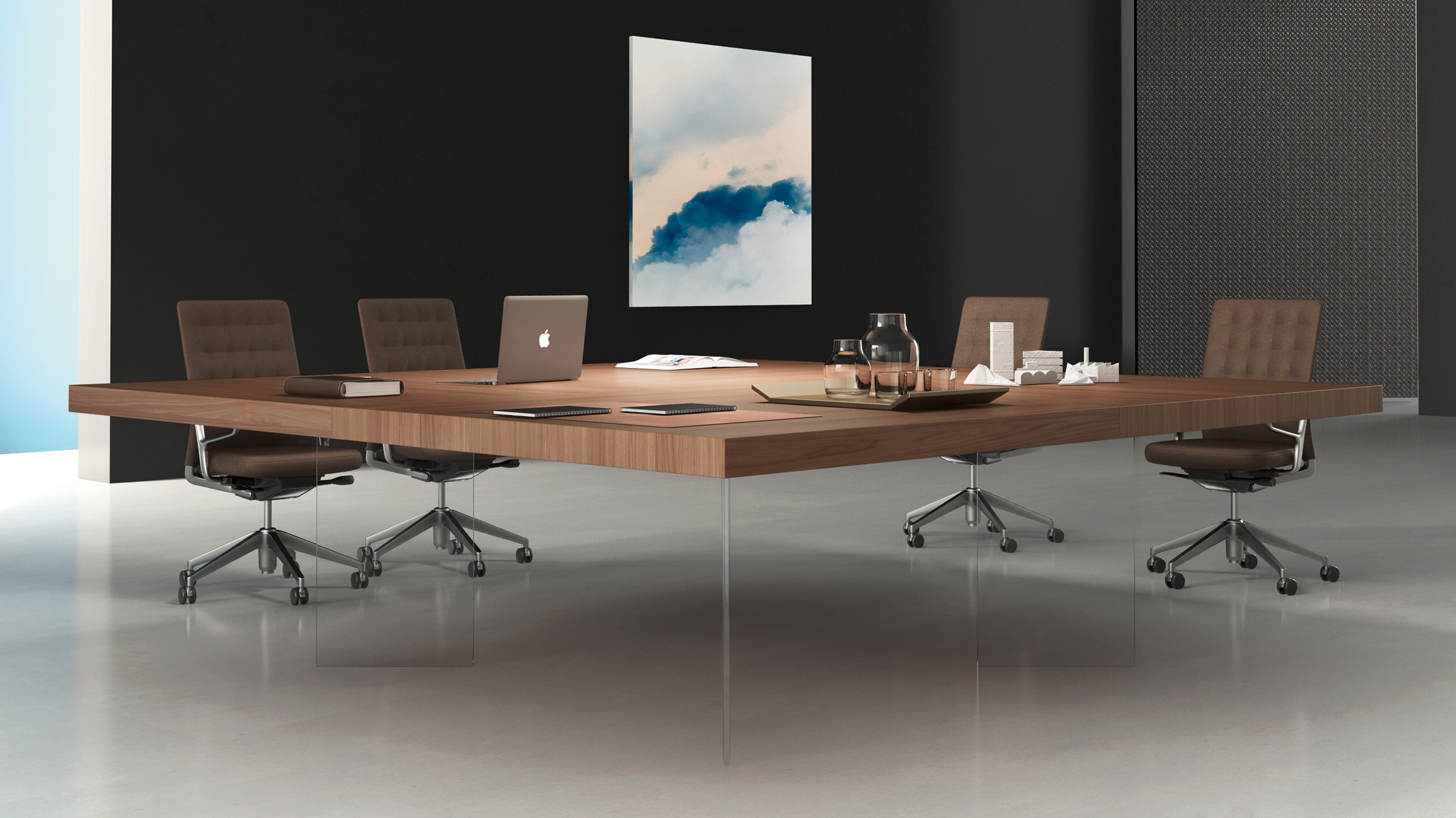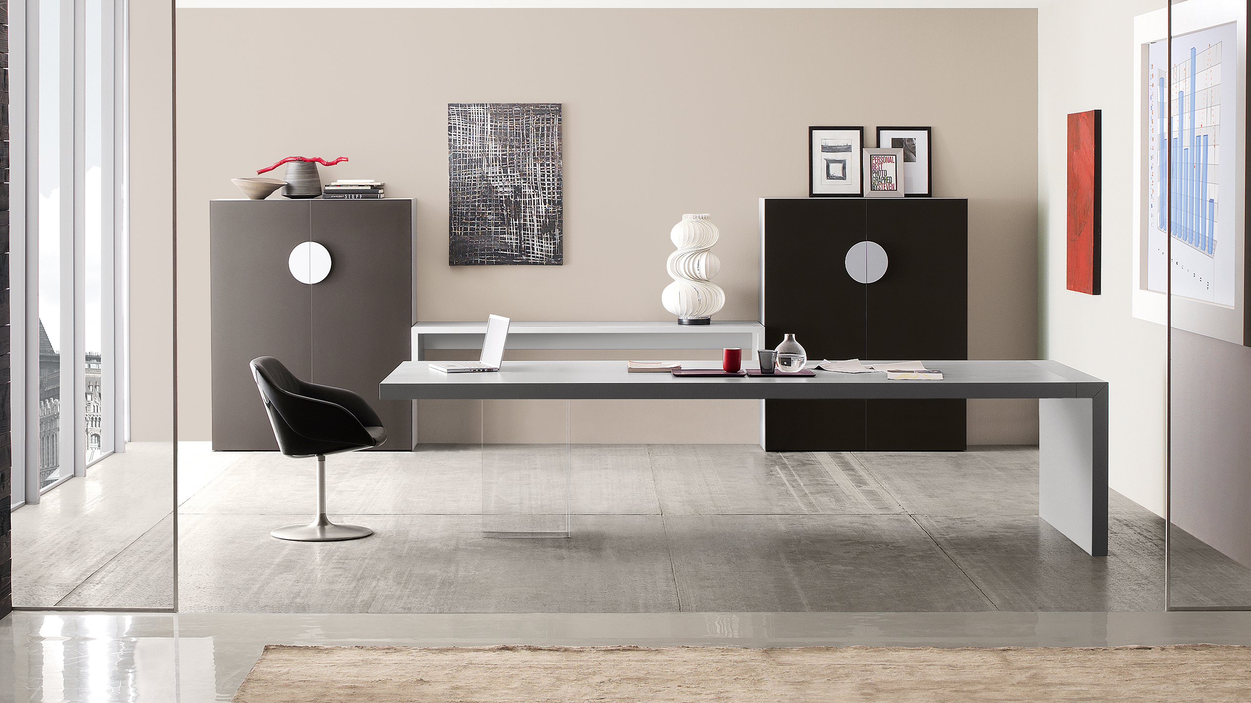 Nel primo caso i sistemi meeting di Kyo ne riprendono gli stilemi estetici, mentre per gli aspetti funzionali sono state curate le canalizzazioni per la distribuzione dell’energia e delle reti telematiche.
