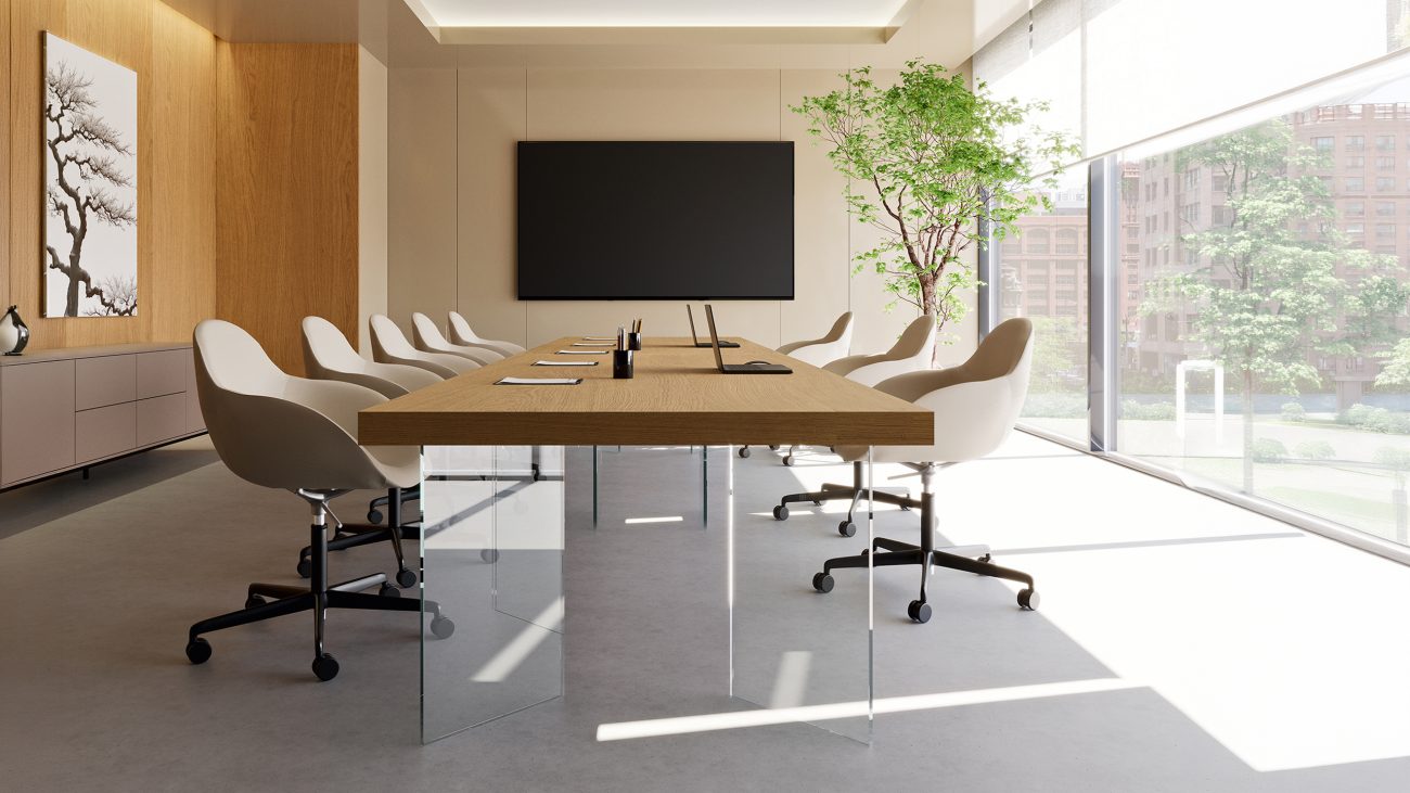 In the same way, in contemporary offices meeting and conference rooms become larger and more formal environments, designed to host strategic meetings, presentations and moments of discussion.