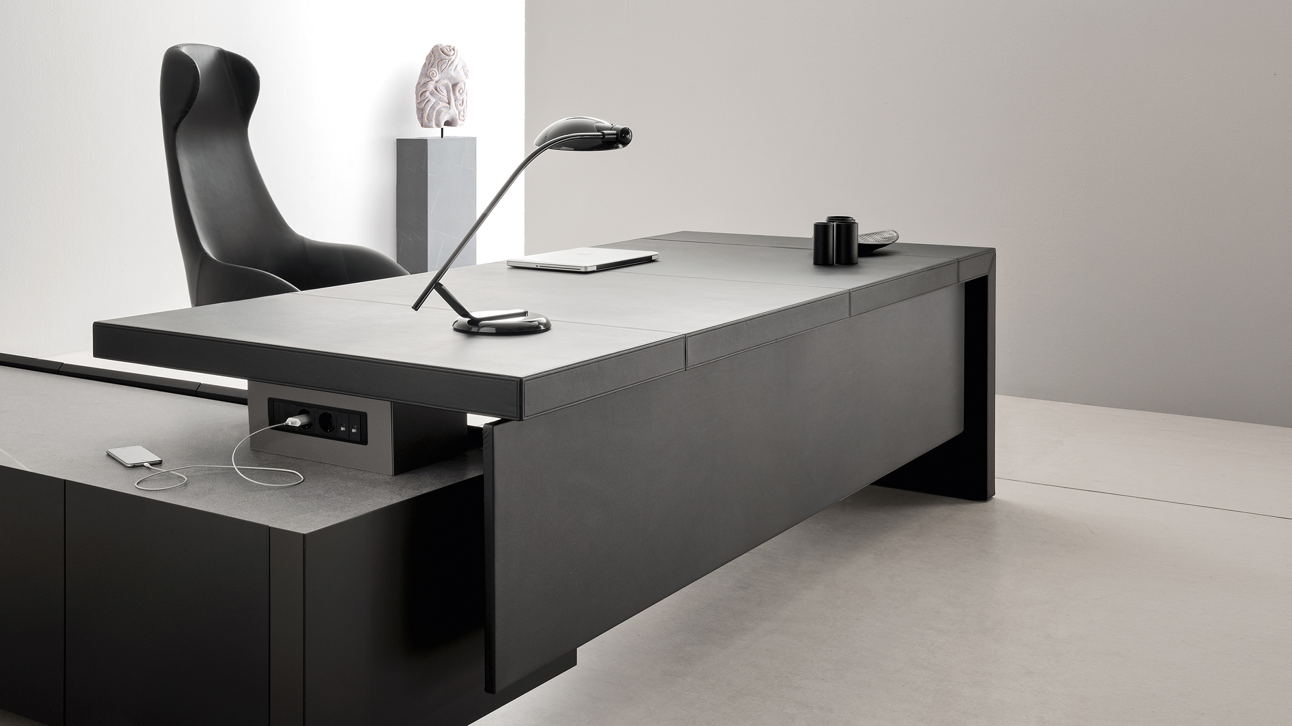 KYO is an icon that continues to enrich its range of products and finishes for maximum customization. Desks and meeting tables come in a wide variety of materials: from wood to lacquer, from glass to leather, from cement to ‘solid surface’ through to more particular materials such as Gres or marble on request.