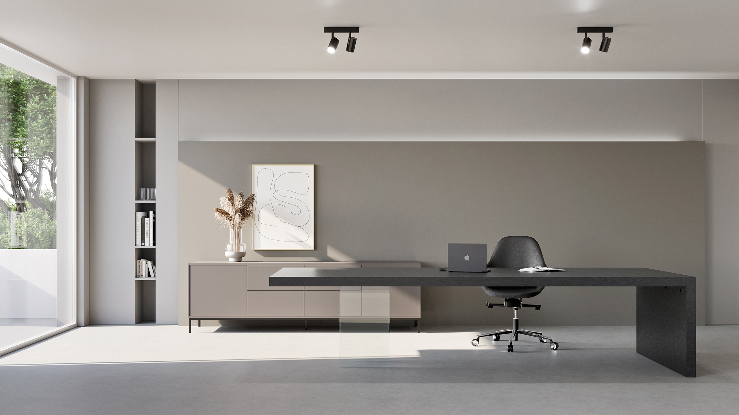 Kyo, a Japanese word meaning ‘strength’ is a collection of presidential, executive and meeting tables, where the simple shapes of the lines are enhanced by the use of materials and the thickness of the tops.