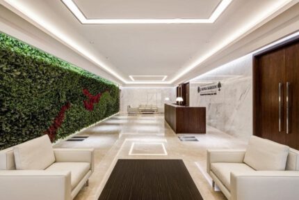 The interior architecture and space planning for the new Abdul Latif Jameel Investments office in Jeddah follows the company’s branding …