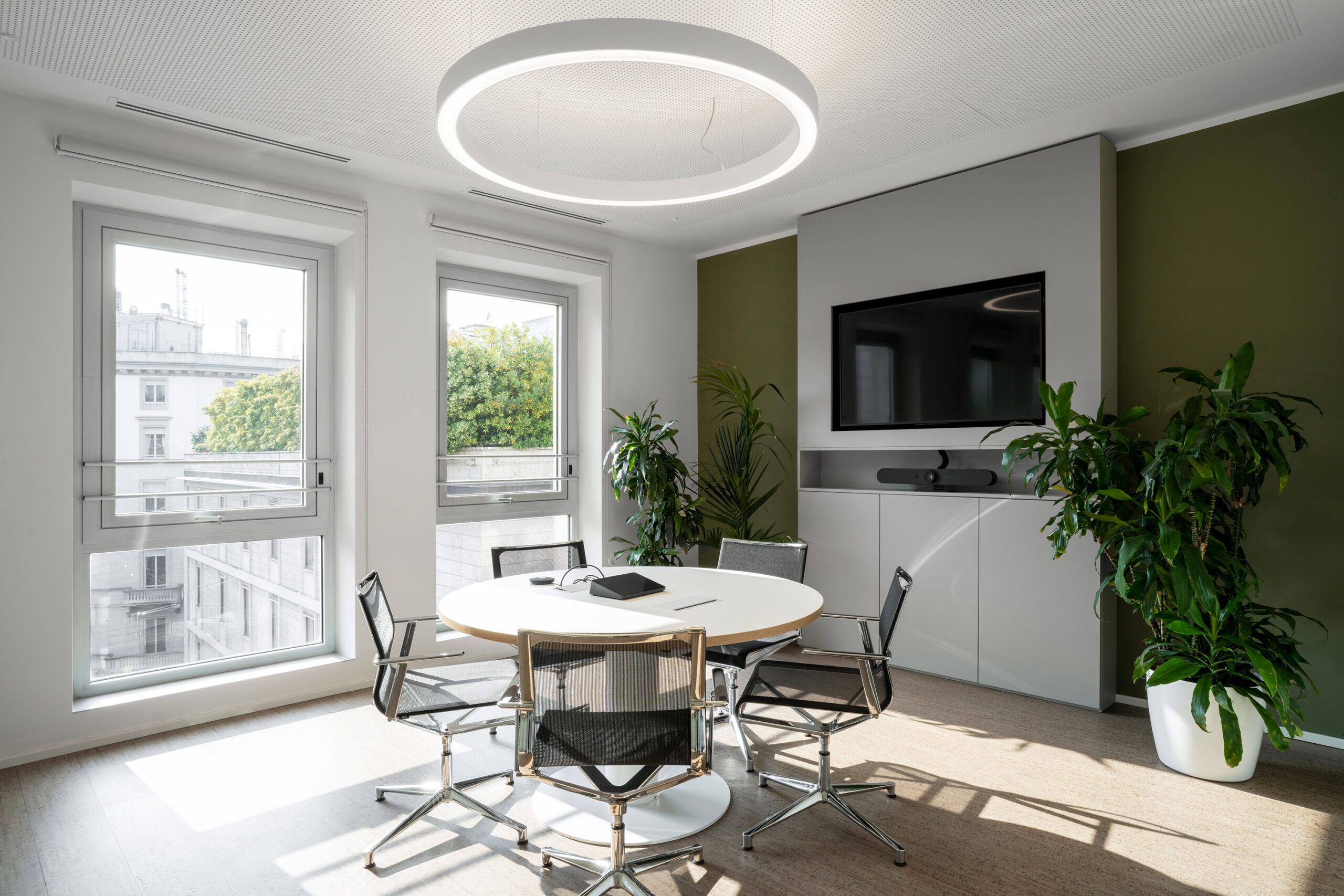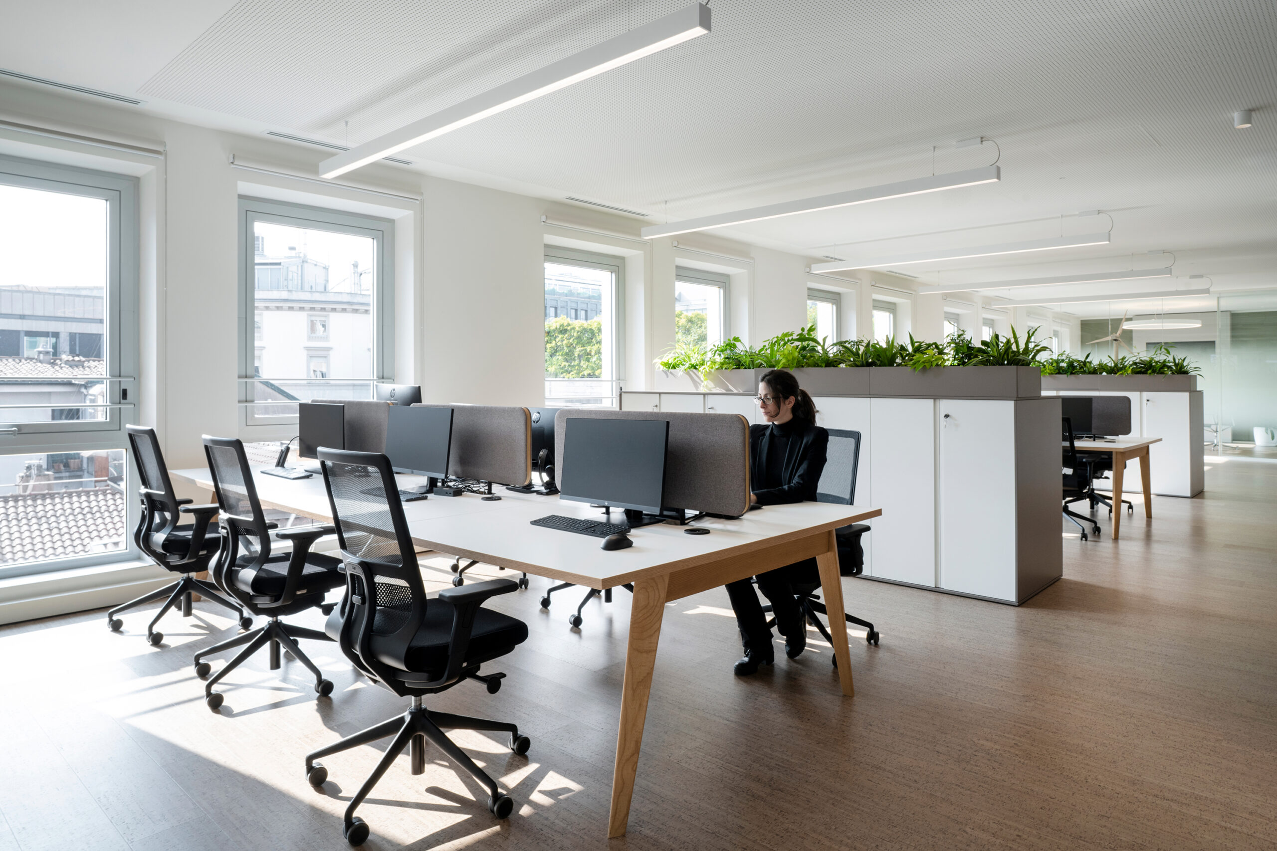 In the new Milan office of Cubico Sustainable Investments, designed by Progettazione Aurea®, a contemporary workspace takes shape where well-being, sustainability, and functionality blend seamlessly.