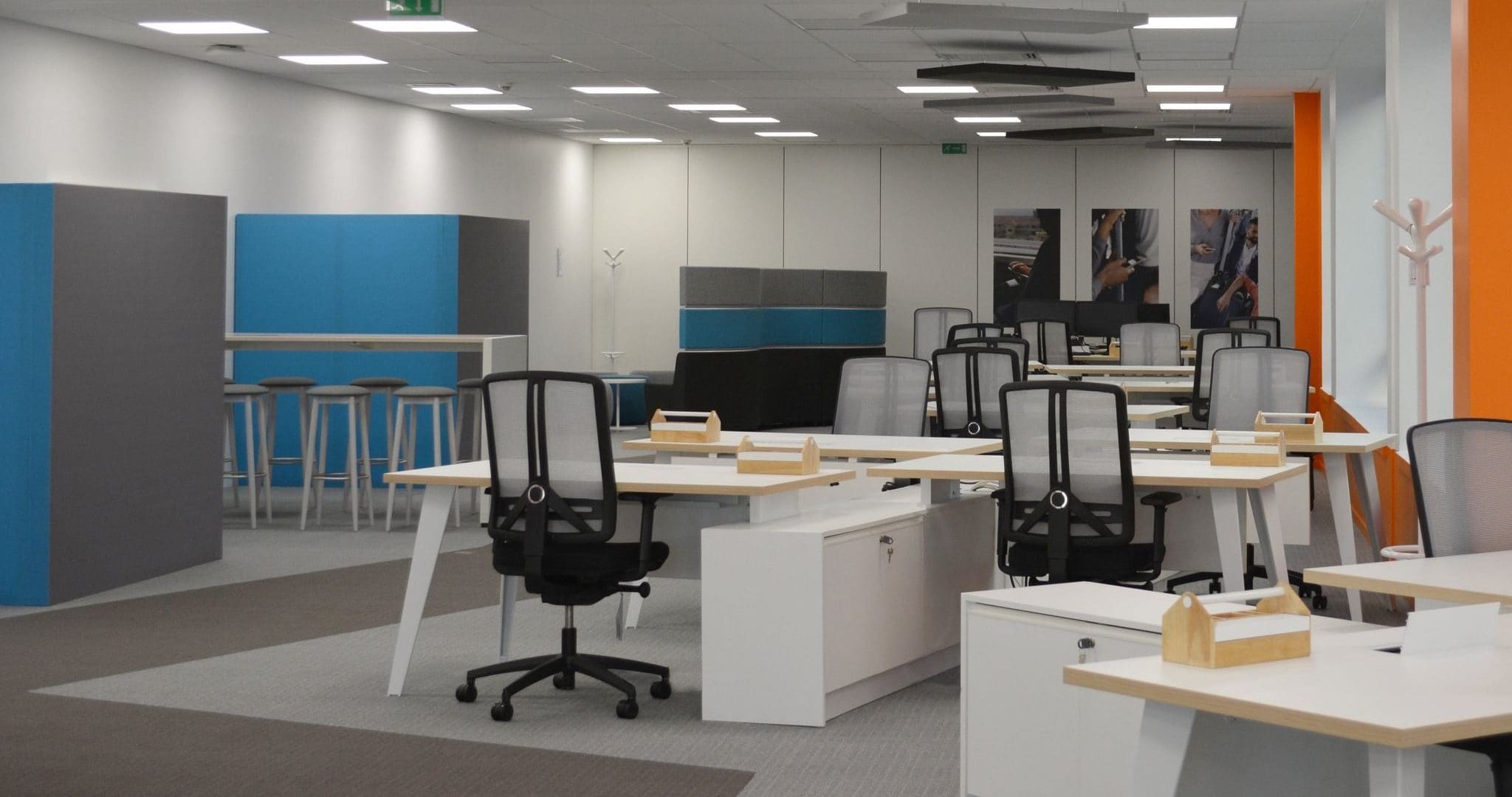 Customer Request: Dynamic Open Space with the maximum number of face-to-face workplaces. Furnishings: Pigreco desk + tailor-made Vertebra spine storage system